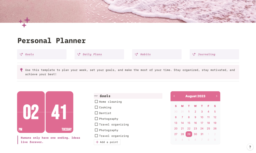 Introducing the Personal Planner in Barbie style: your ultimate companion for goals, daily plans, habits, and journaling!